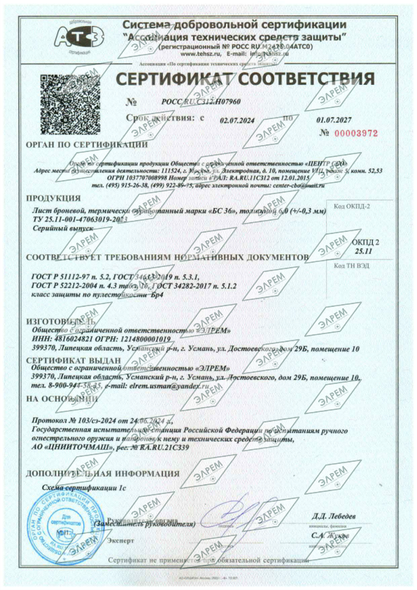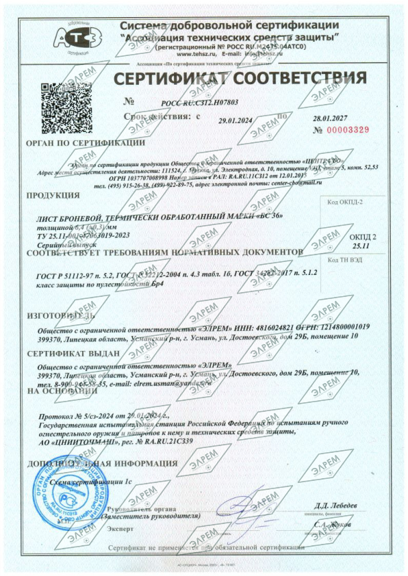 ПРОИЗВОДИТЕЛЬ БРОНЕВОЙ СТАЛИ БС 36